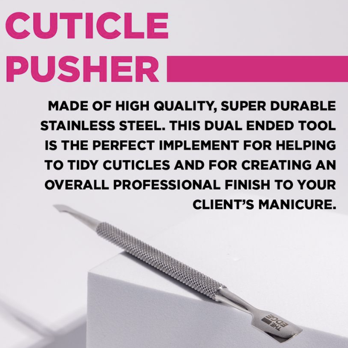 The Edge Cuticle Tools are professional-grade instruments designed to care for and maintain the cuticles, ensuring clean, healthy nails. These tools are essential for precise cuticle trimming, pushing, and shaping, which is key to a flawless manicure.
